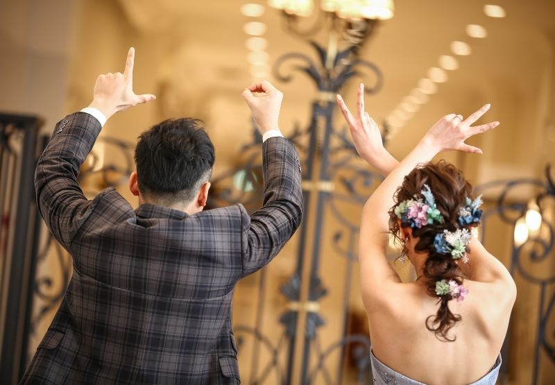 後ろ姿からも幸せオーラがあふれるこちらのお写真