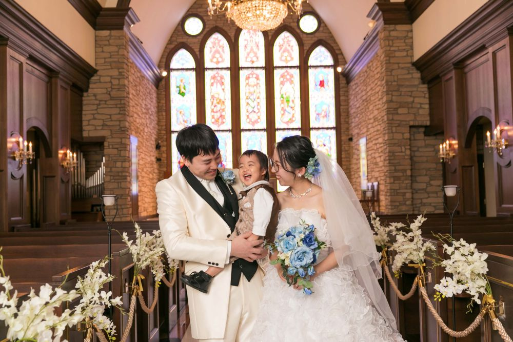 新郎新婦もお子様もとびっきりの笑顔です♪