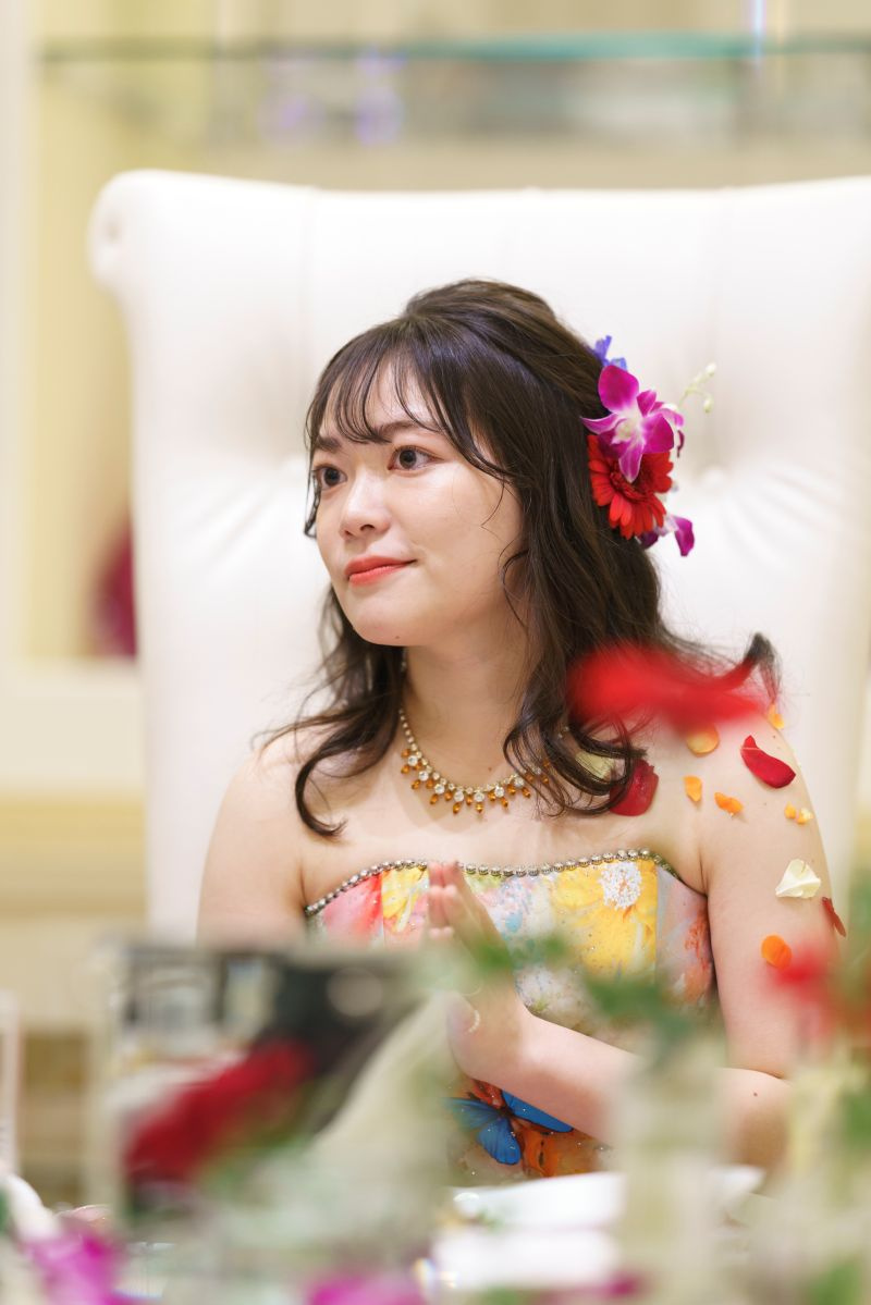 カラフルなドレスにもマッチしてより一層華やかになりますね!