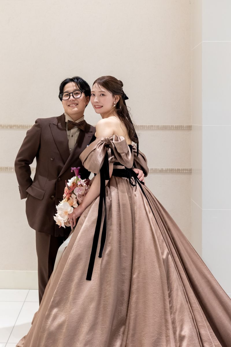 新郎新婦の色味を合わせたペアコーデ