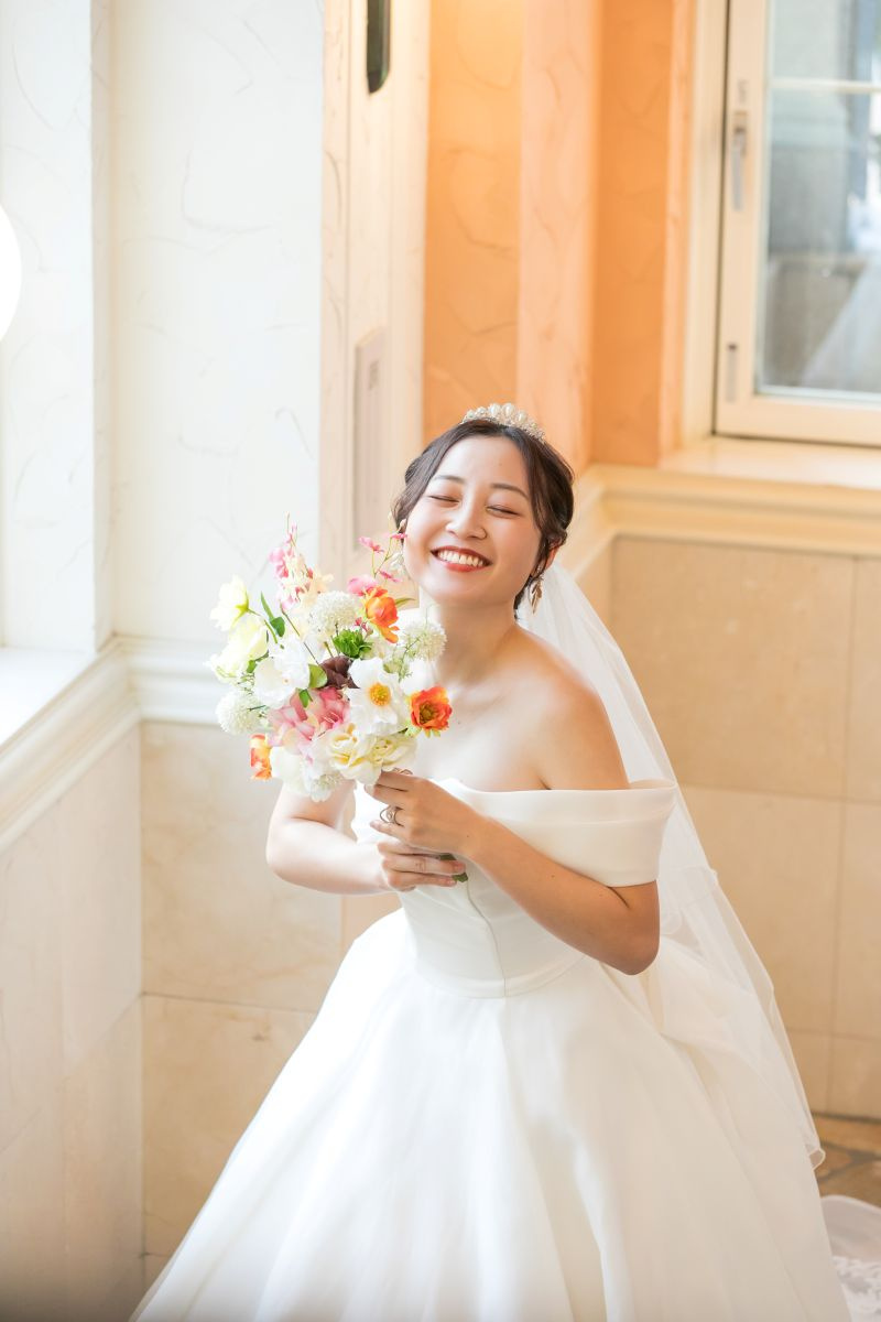 幸せいっぱいの新婦の笑顔がかわいいです!