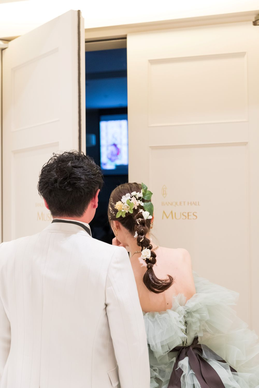 ご覧になっている様子をおふたりがこっそり扉の向こうからご覧になっています