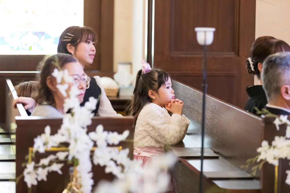 小さなお客様が見つめている先には…新郎様新婦様おふたりの姿が!