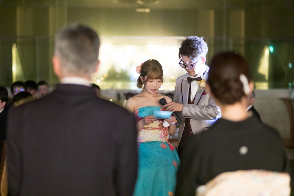 ご出席の皆様の見守れている中、ご新婦様よりご両親へ感謝の気持ちを込めてお手紙をよんでいます。