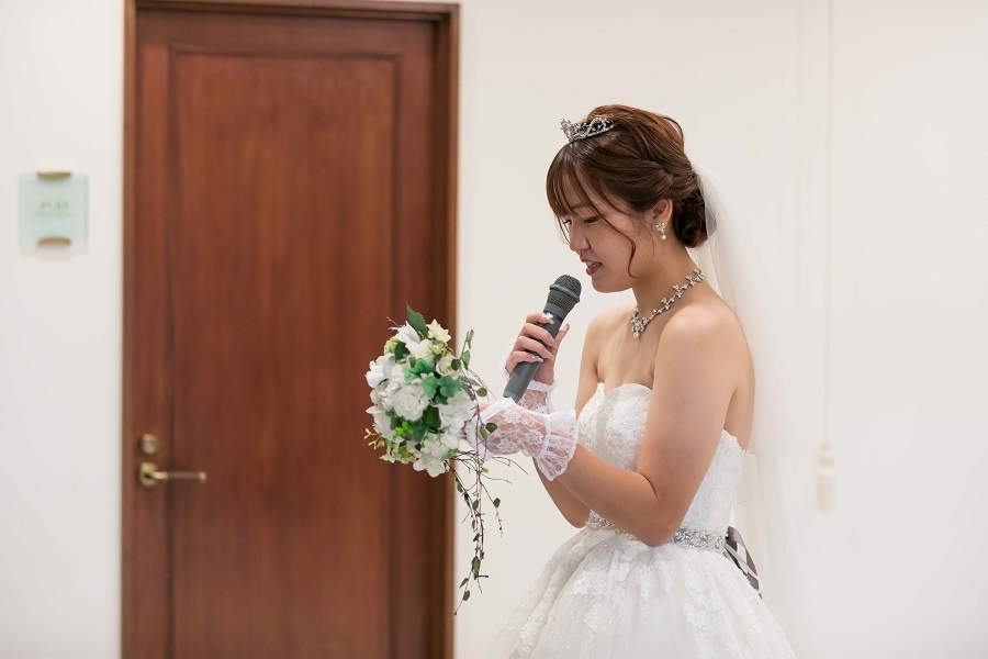 こちらの新婦様は、挙式の入場前に大切なご両親様へ