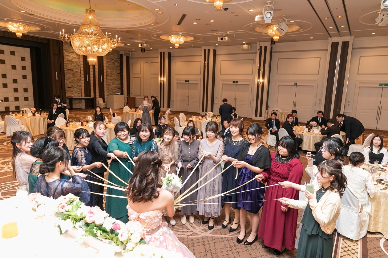ブーケトスの代わりにリボンを引いてもらうセレモニーです!
