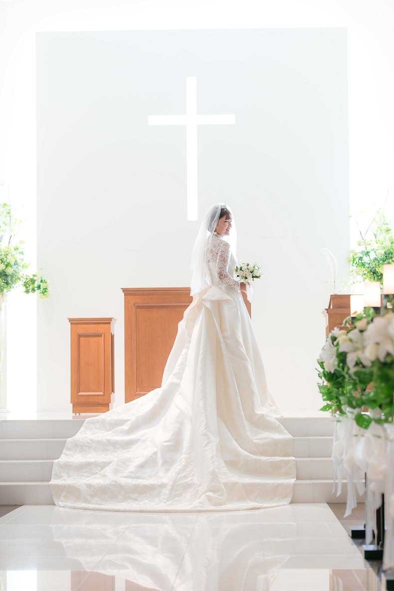 ドレスのトレーンが綺麗に見える祭壇は映えるポイントです!
