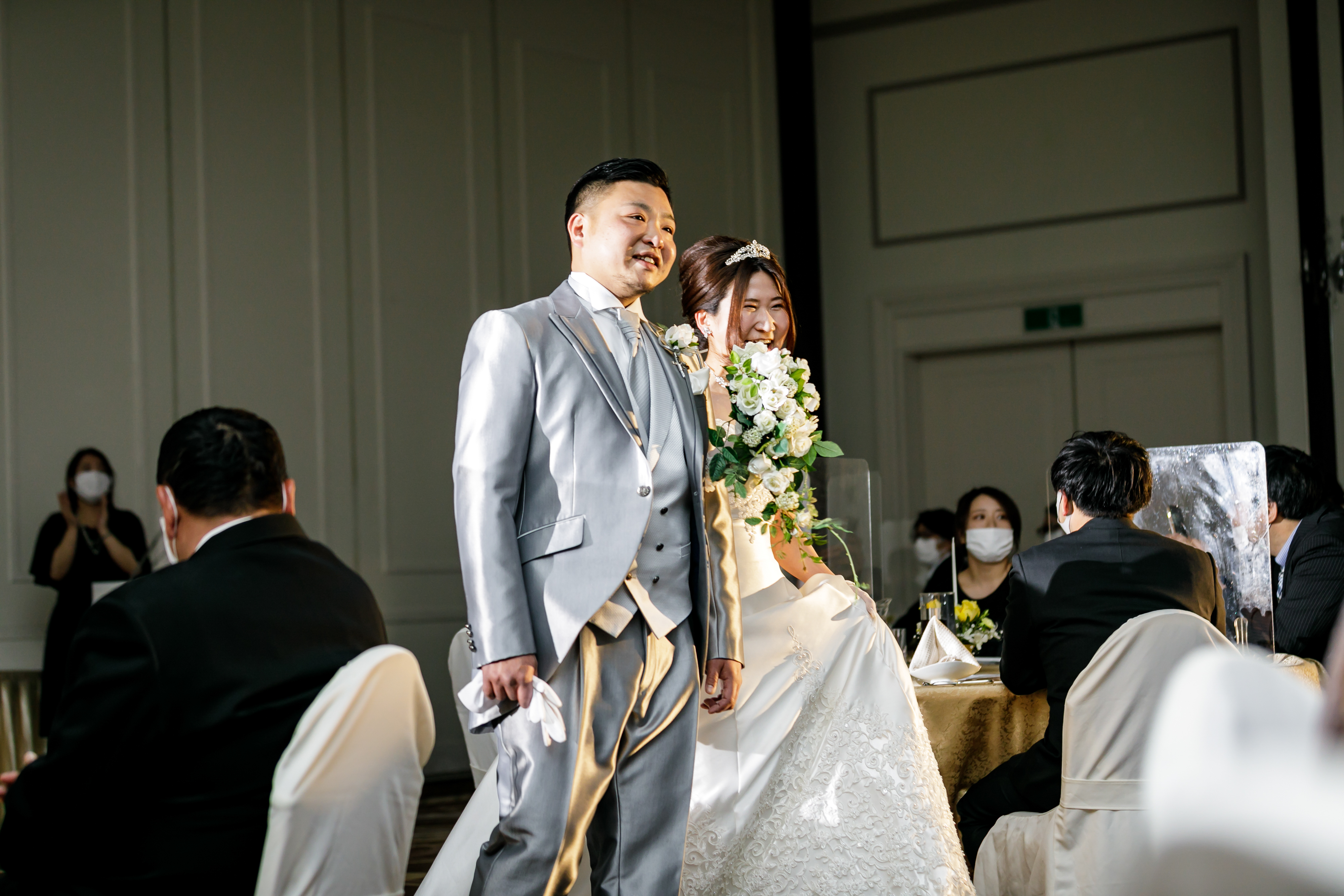お2人はタキシードとウェディング姿にお着替えをされまして