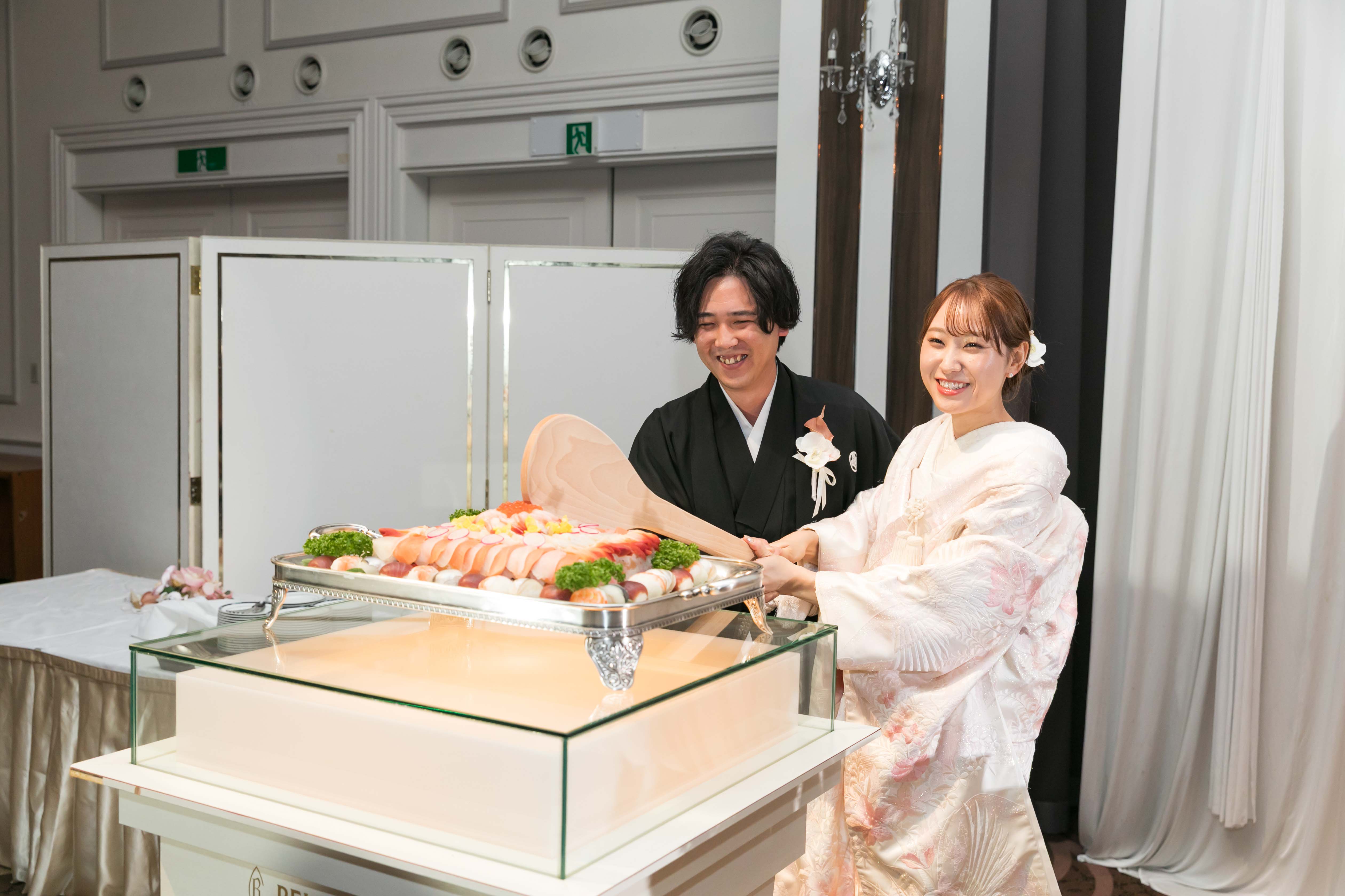 おふたりはウェディングケーキではなく、お寿司ケーキをご用意しました✨