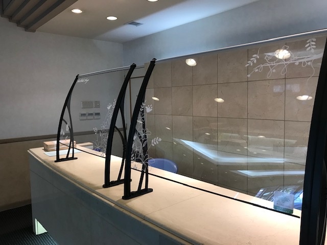 シールドに絵を書きまして少しでも不快感のない面白い物を置いてお客様をお迎えできるようにしています!