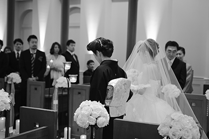 続いてご新婦様は大好きなお母様にベールダウンをして頂き、一緒にご入場