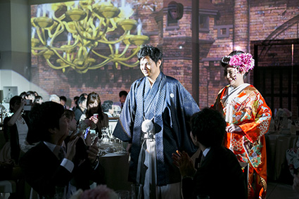 ガーデンからお2人がお色直し入場