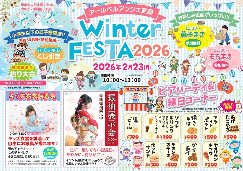 《イベント情報》 2/23(月・祝)開催★ 【 アールベルアンジェ室蘭 Winter Festa 2026 】
