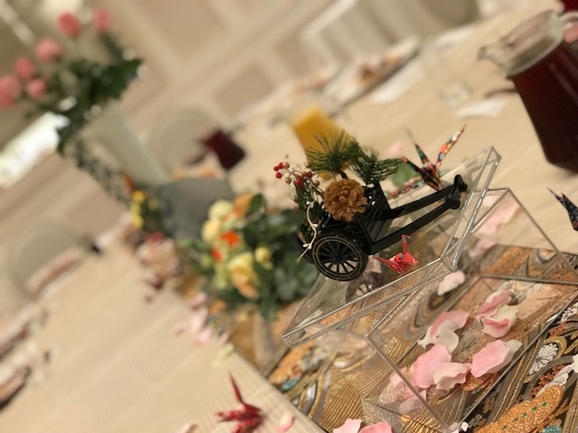 ご新郎ご新婦様が折り紙と折り鶴、