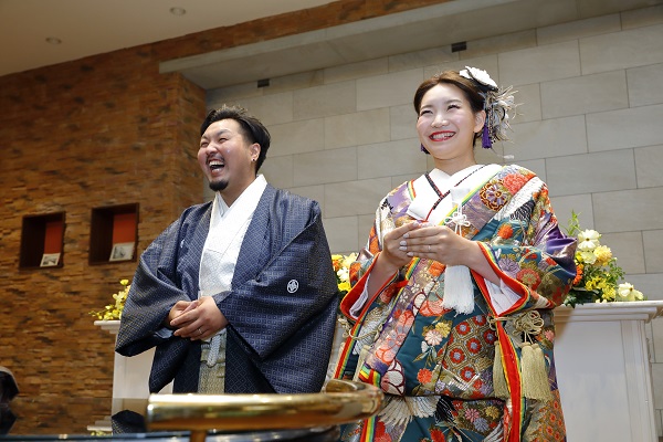 かなりお気に入りの打掛をお選びになったお嫁さん、ゲストの皆さまにも