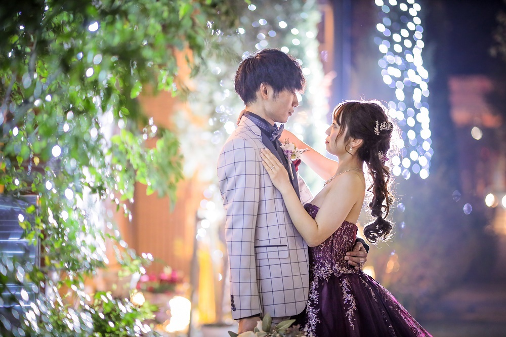 イルミネーションを背景に、大人っぽい雰囲気で撮影したこちらのお写真、、