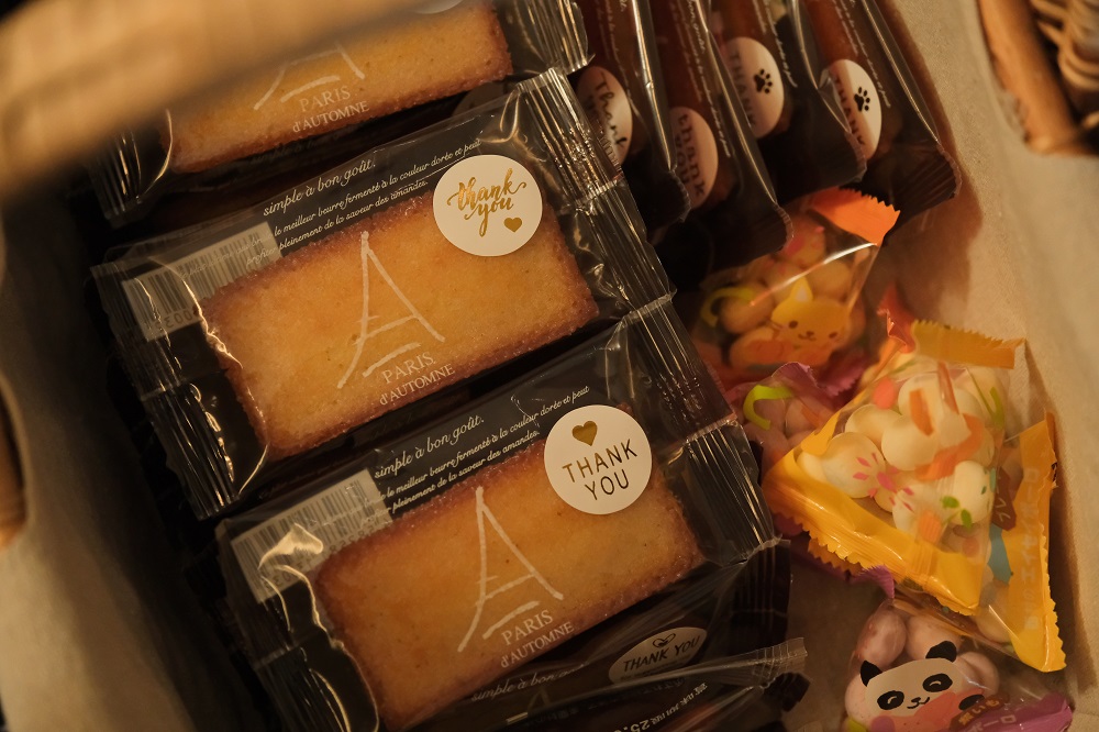 新郎新婦様それぞれ1つずつ当たりを入れ当たりを取った方にはコスメブーケとおつまみの詰め合わせをプレゼントしました