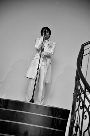 新郎のSさんが階段真ん中の踊り場で歌い始めました。