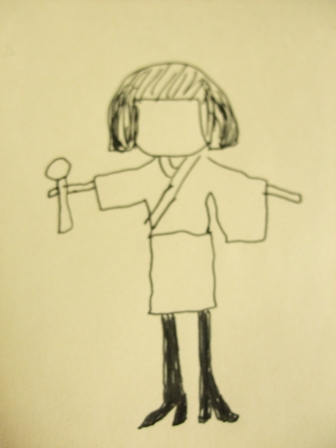 披露宴で着ていた着物を着て、腰ひもを使って膝丈に合わせる。。。