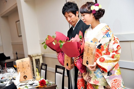 新郎家・新婦家・そして新郎新婦様でお揃いの時計になります。