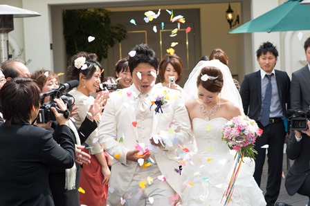 ガーデンではミッキーシャワーでゲストの皆様に祝福していただきました!