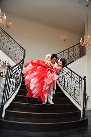 階段入場では、お姫様だっこで軽々と階段を降りられたGさん。