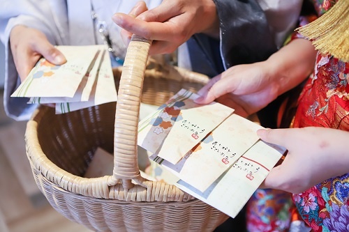 ご披露宴のおひらき後新郎新婦さまはゲストの皆さまをお見送りします