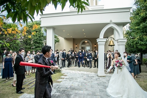 新婦様にボールを投げていただき、新郎様はバットでそのボールを打つ☆