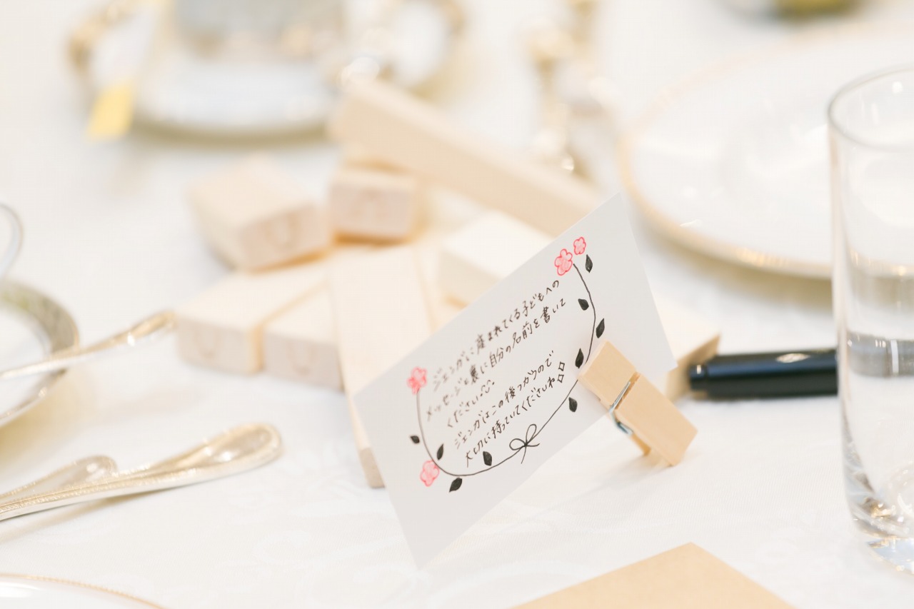 今から生まれてくるお子様にゲストの皆様からメッセージを書いて頂きました。