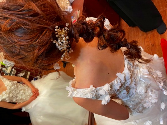 ヘアスタイルによってイメージが変わるので飾りやドレスをかえなくても違う雰囲気を味わうことができます(^O^)