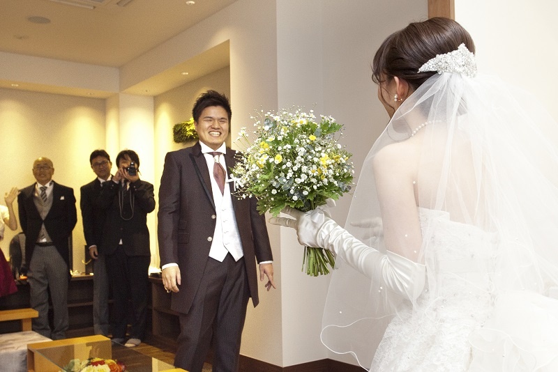結婚式当日に初めて新婦様のドレス姿を見た新郎様