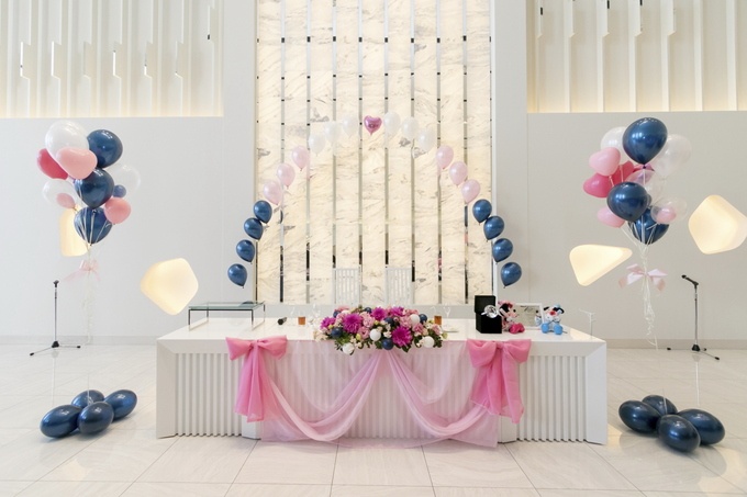 新婦様のご要望で高砂を可愛く バルーンで飾付けさせていただきました 新婦様のセンスに基づき ご用意させていただいたのですが とーっても可愛くなりました ちなみに高砂のリボンチュールは お持込いただいたものなんです バルーンとコーディネートが ばっちりです
