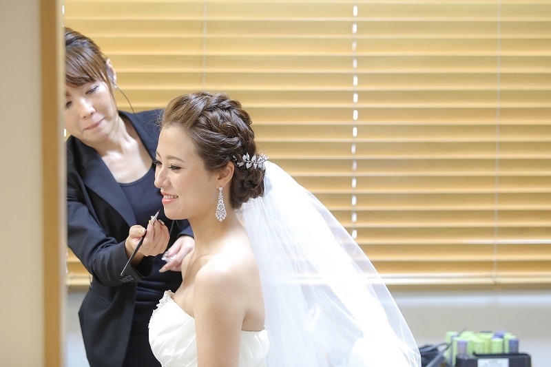 結婚式当日はプロの美容スタッフによるヘアメイクにてお支度させて頂きます(*´▽`*)