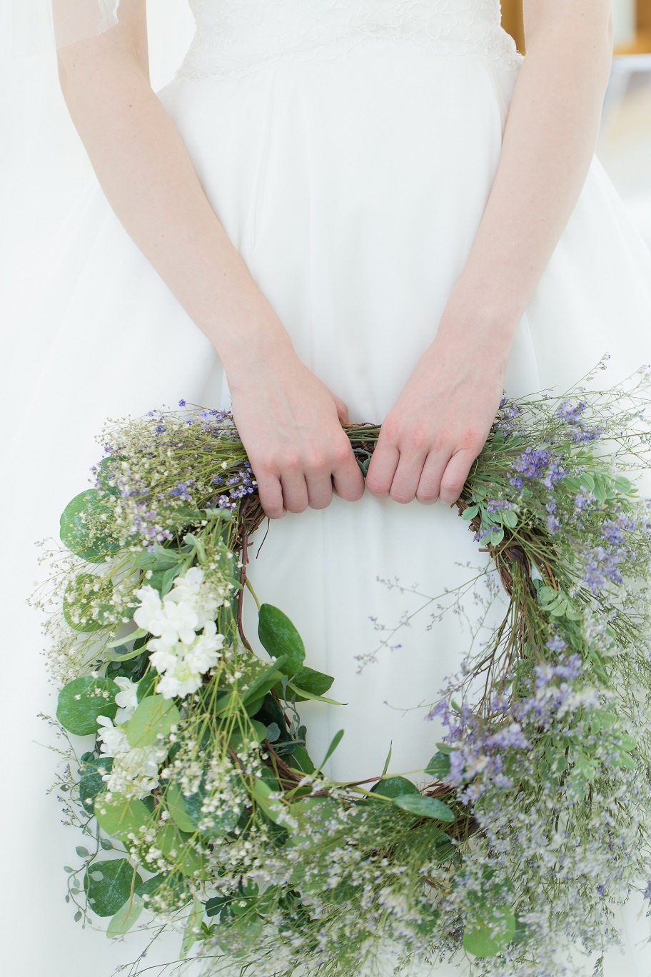ナチュラル感たっぷりのリースブーケ 元々リースには、永遠・幸福・幸運を呼び込むお守りとされていたとの事。 【永遠】【幸福】【幸運】を意味するブーケは 結婚式にとてもふさわしいアイテムです^^