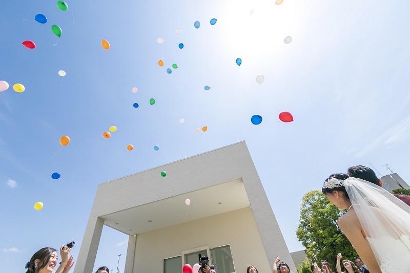「空高く舞い上がるバルーンは、今後新婚生活を迎える