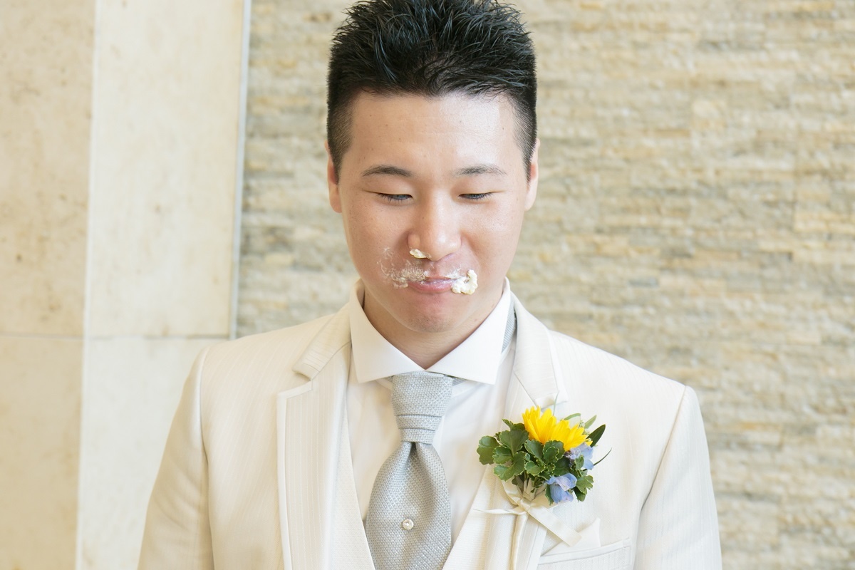 こちらの新郎様はなんとファーストバイトをされた後の新郎様ですが