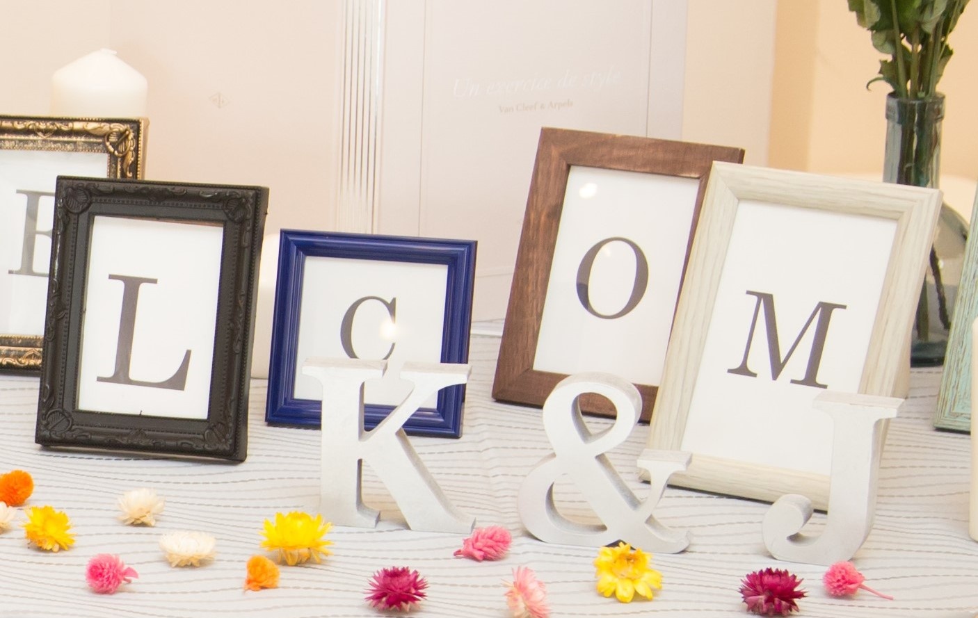 『WELCOME』の文字をそれぞれ違ったフォトフレームに入れてみたり…
