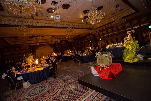 お色直しで、各卓に周らず高砂席まで行き