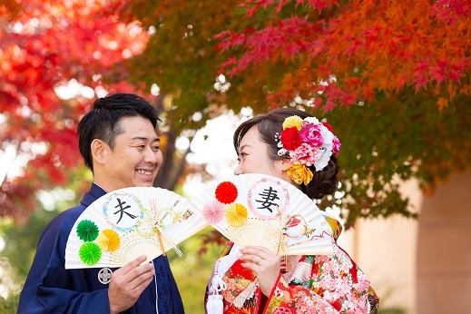 秋の紅葉のシーズンの前撮りも