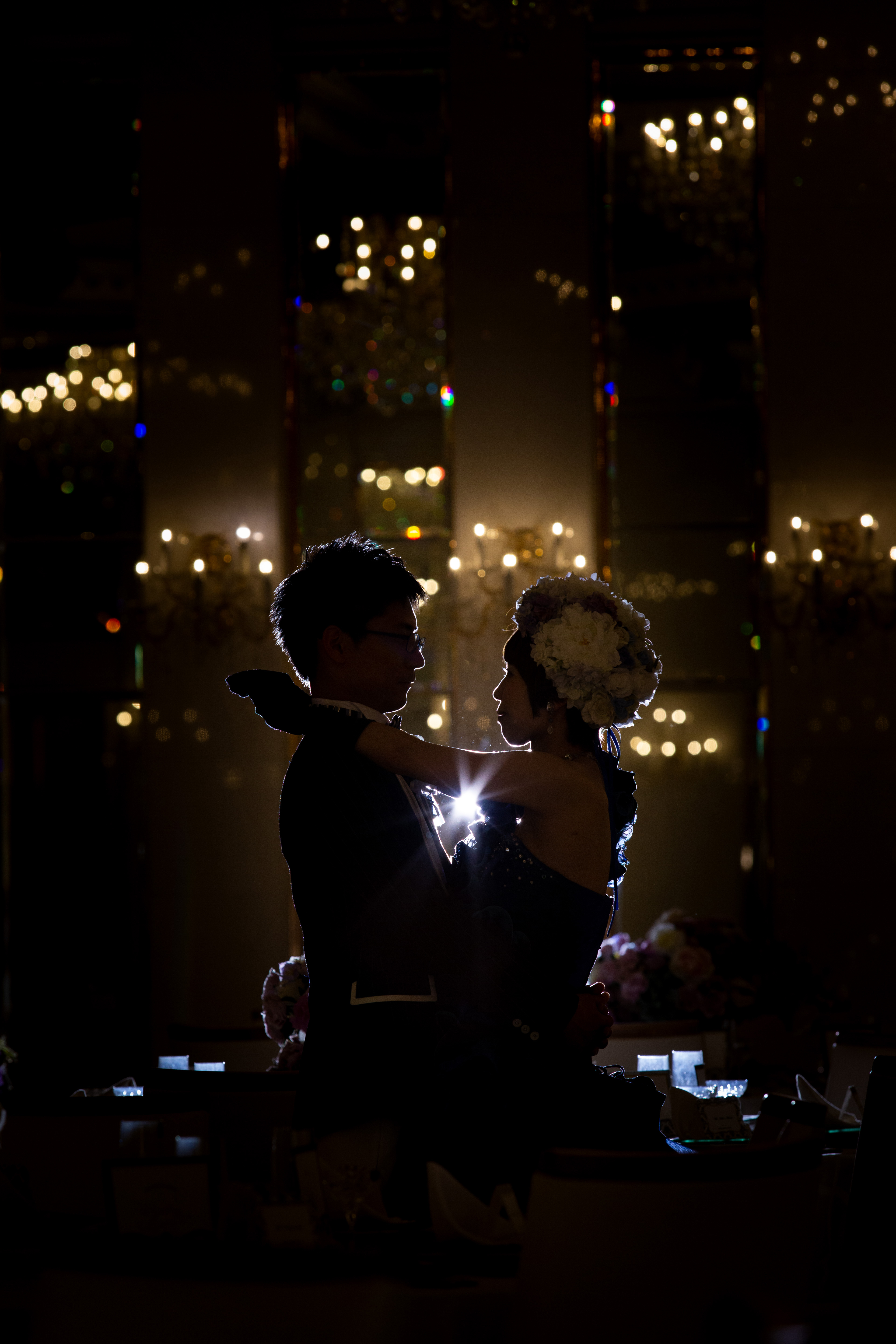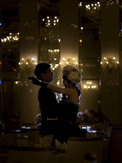 ぺルルブランと言えば、白い壁や大きなシャンデリアが印象的な明るいイメージの会場なのですが、
