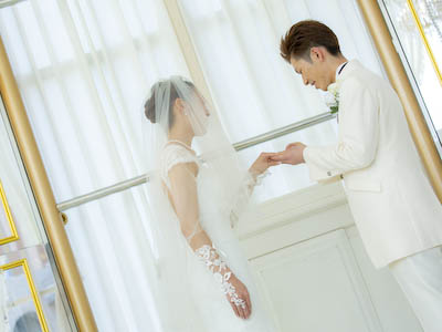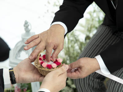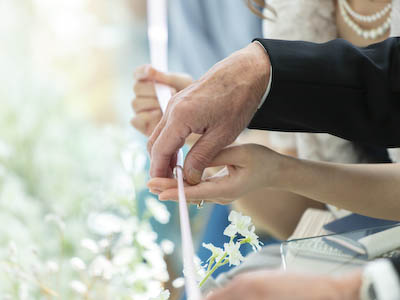 リングリレーとは、新郎新婦様それぞれの指輪をひとつずつリボンに通し、