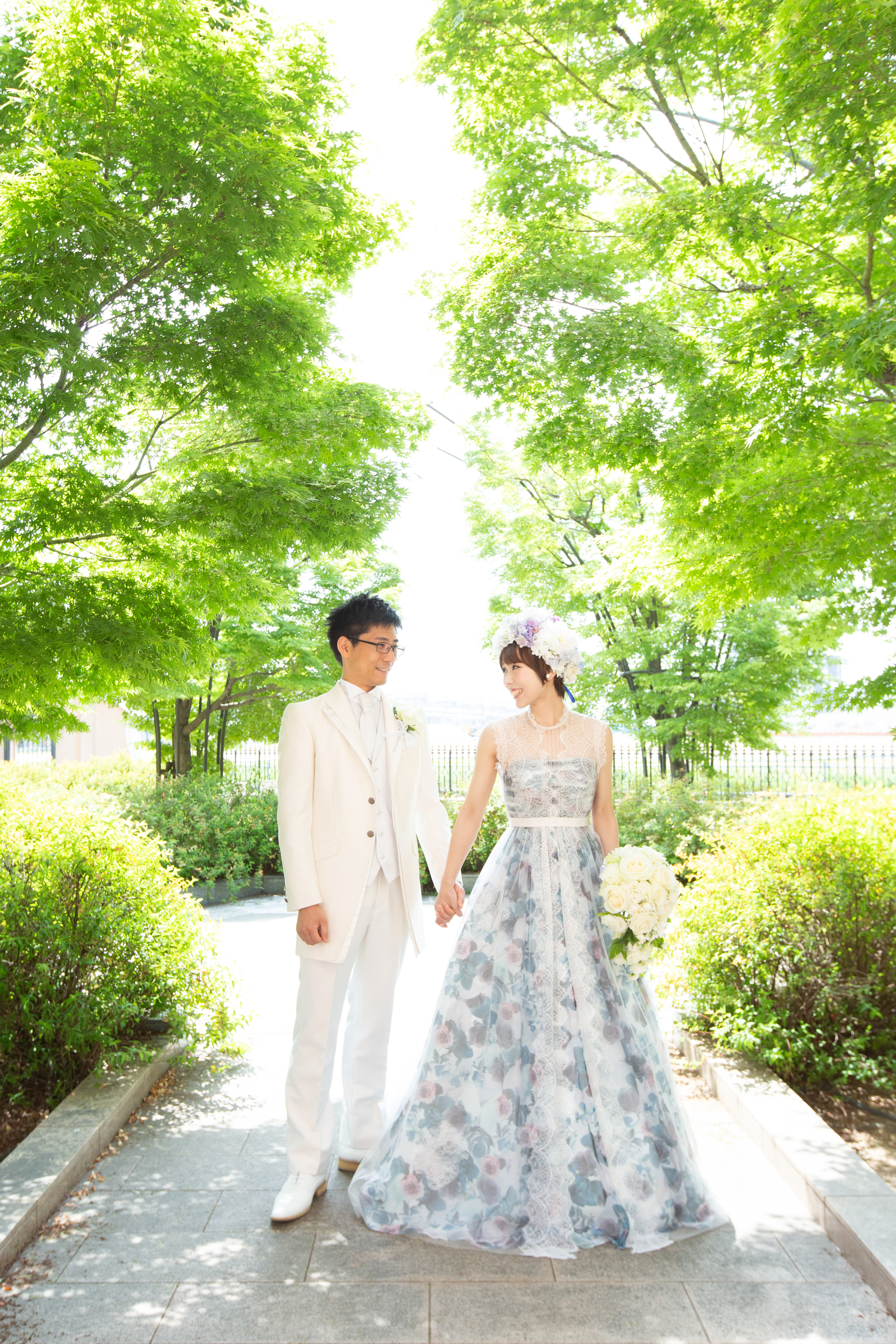 こんなに緑あふれるフォトスポットで仲良く手を繋いで撮影♪