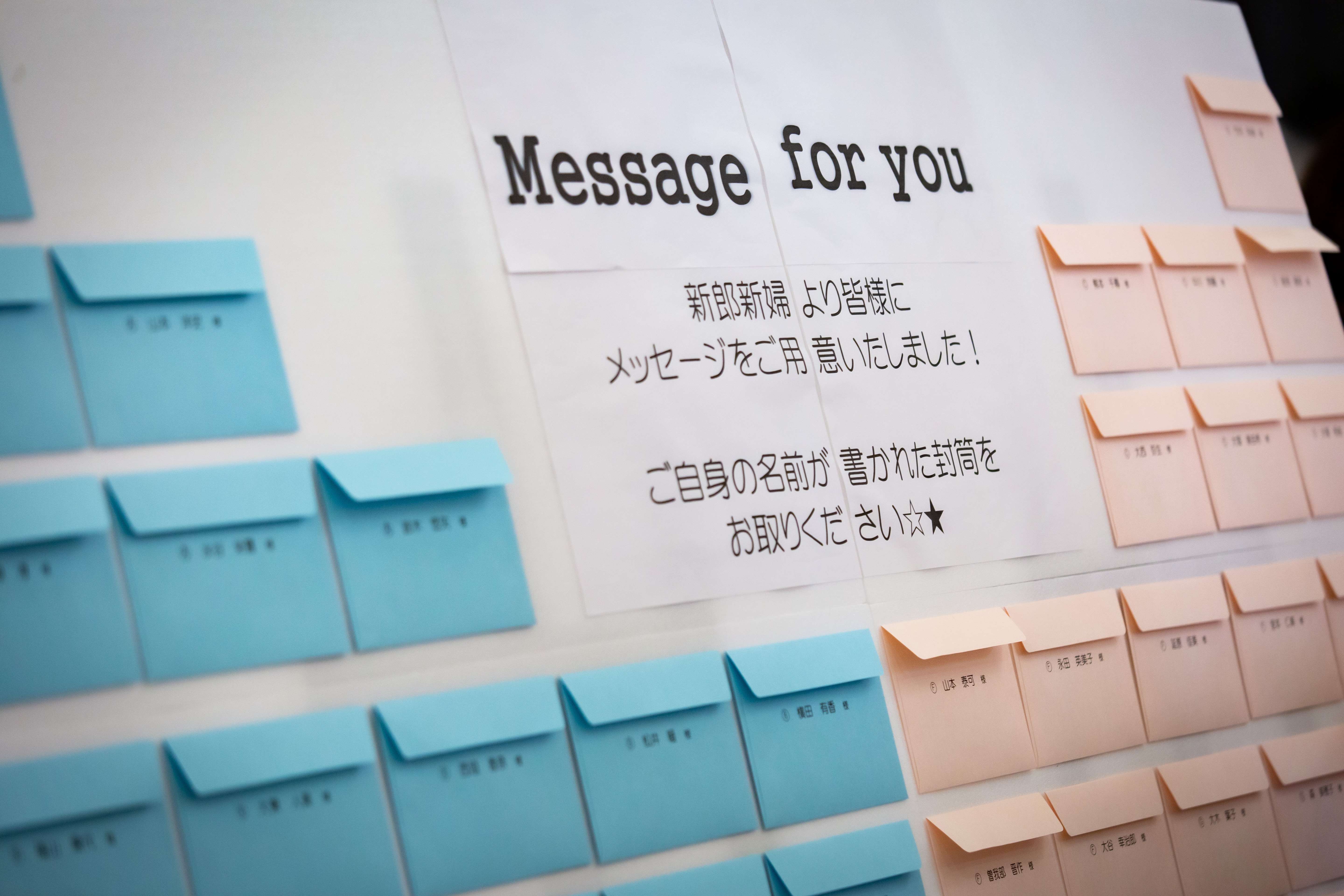 披露宴会場での「席札」にメッセージを
