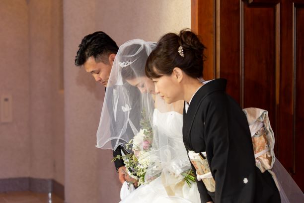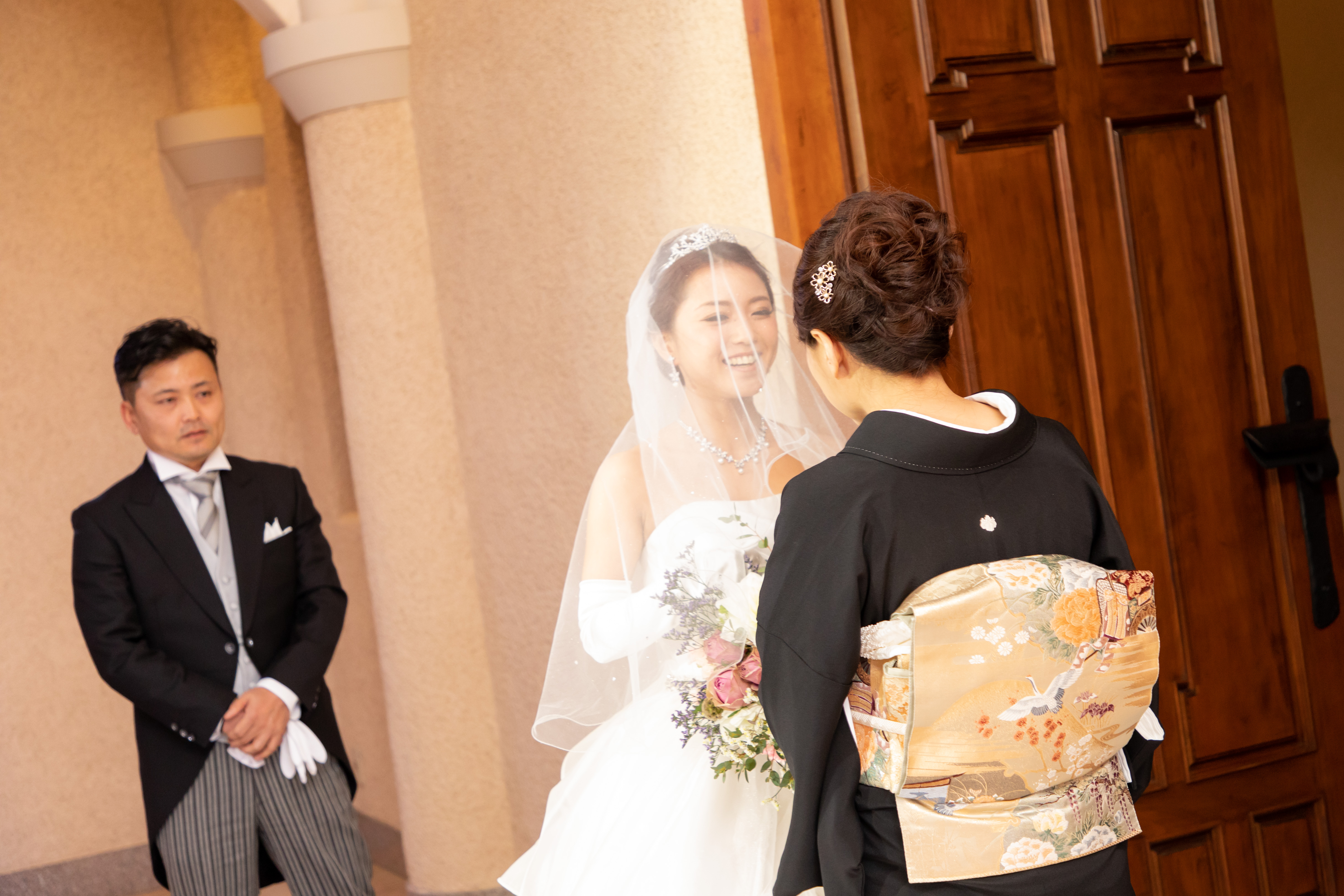 ベールダウンをお母様にお願いされたこちらの新婦様。