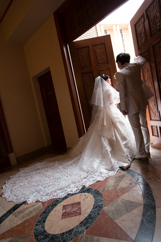教会の照明を落としてシルエットを写したお写真はロマンティックに