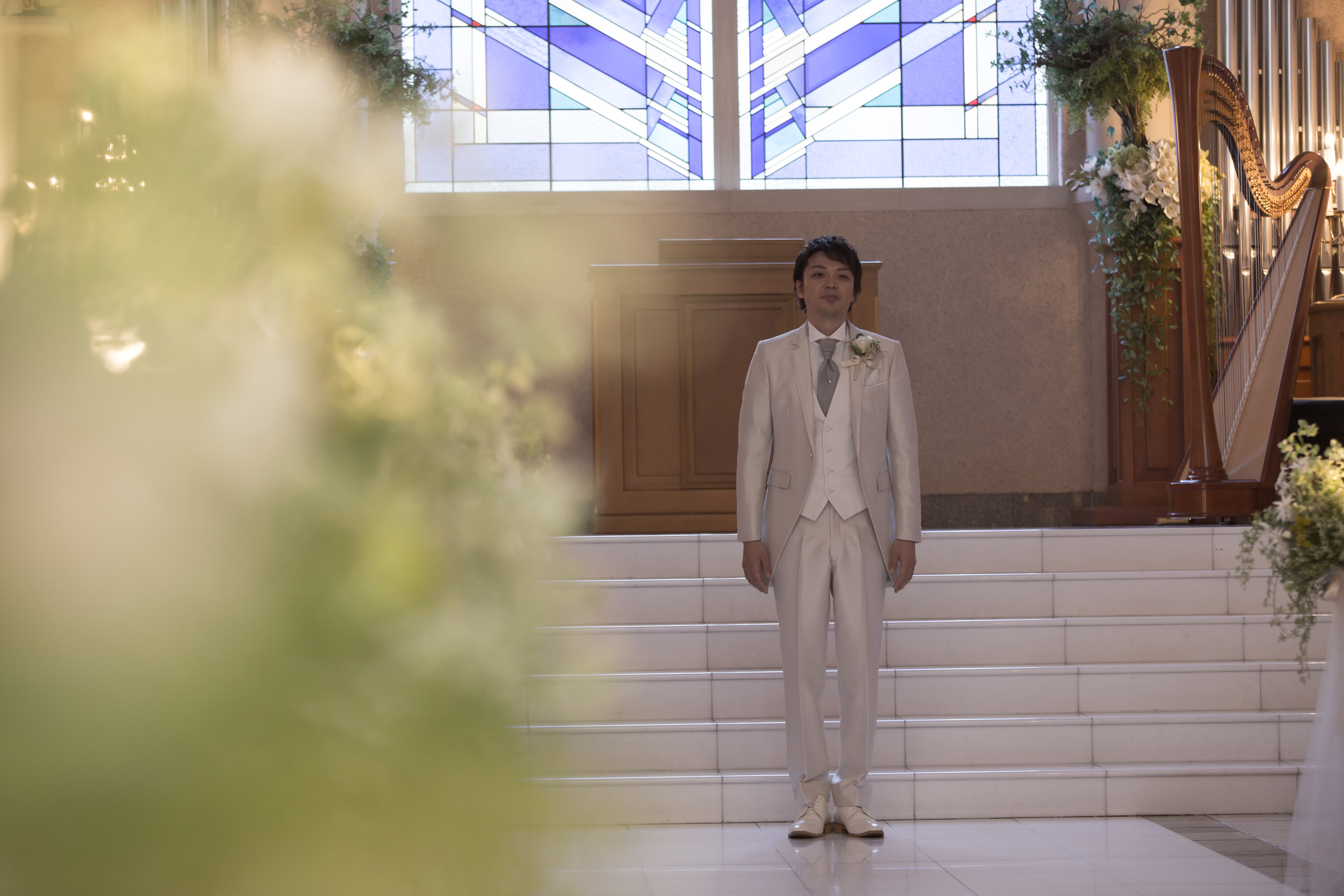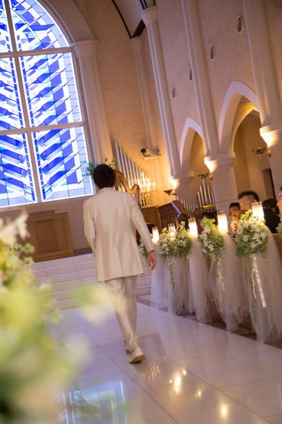 新郎様は、先にご入場して頂き、新婦様を待つ