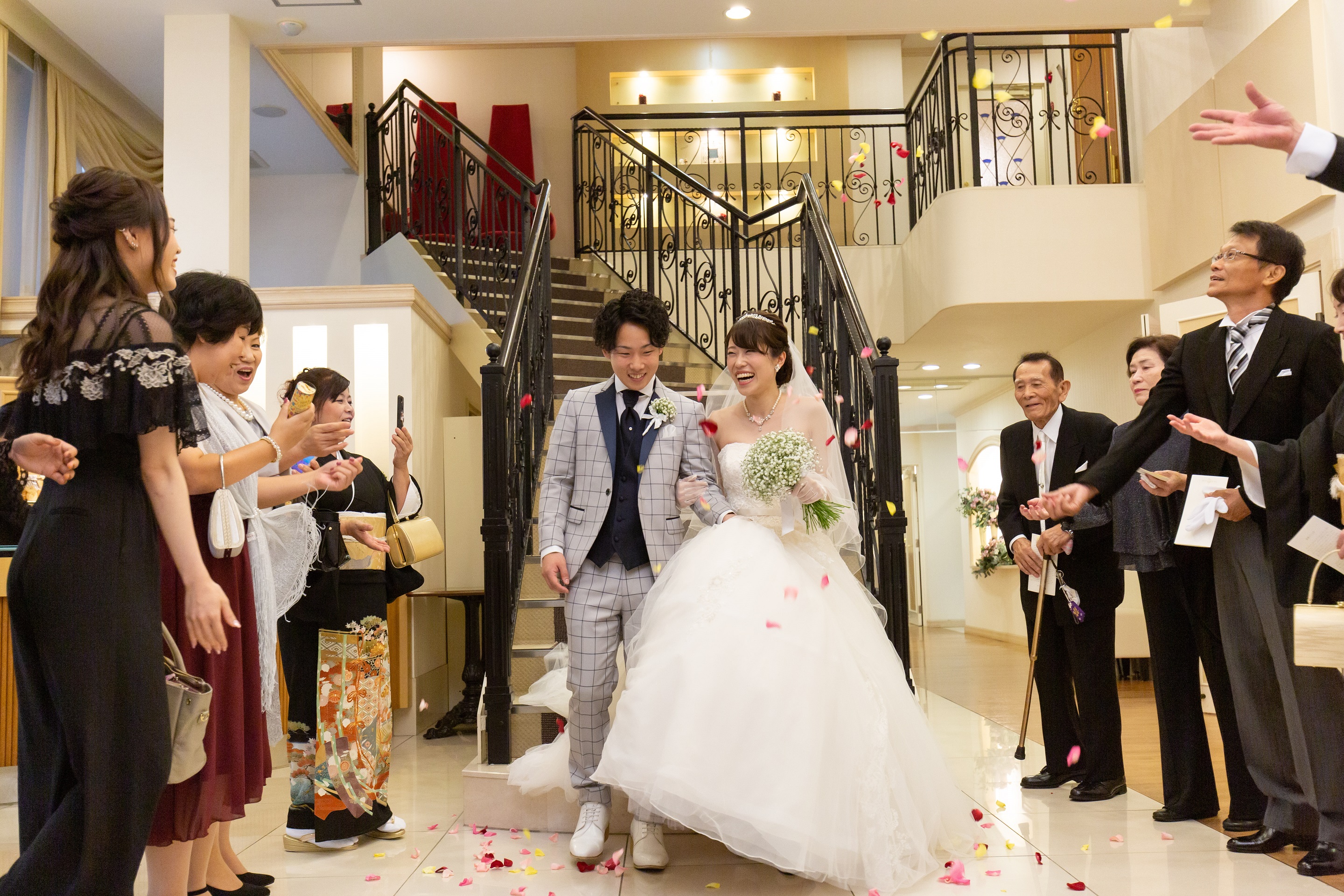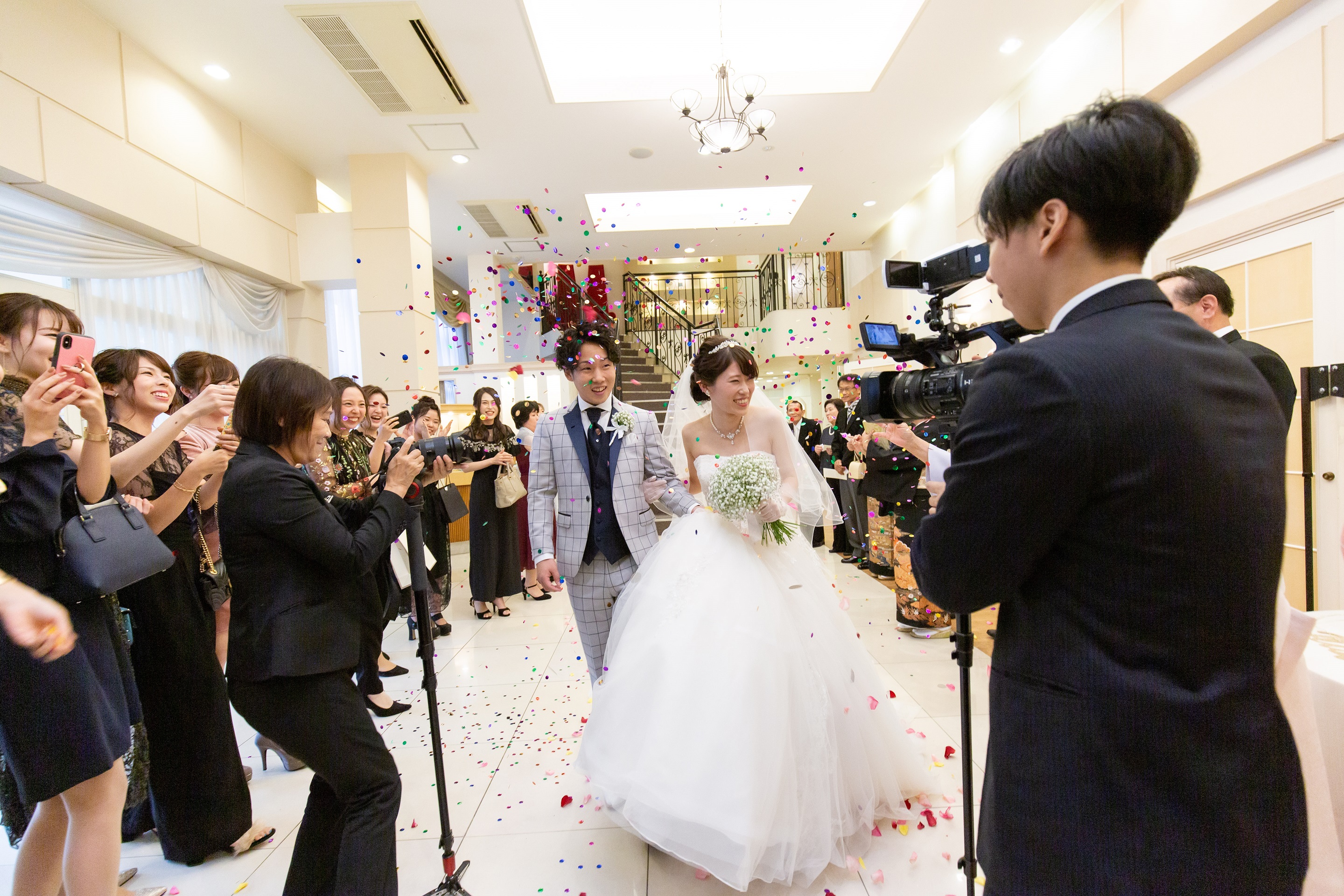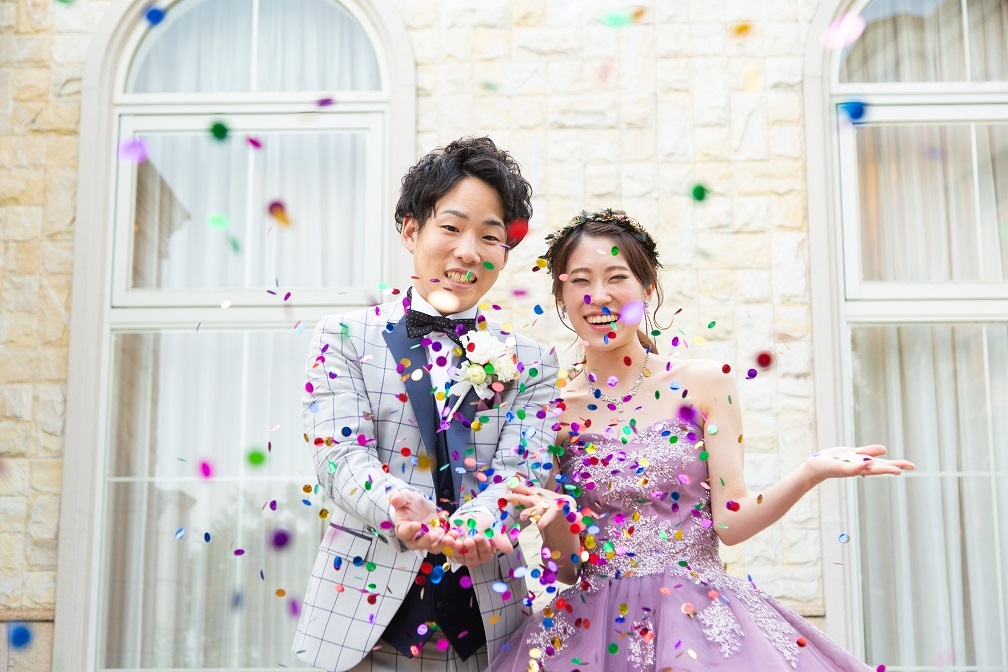 祝福の発声に合わせて、コンフェッティがお二人を先導します♡