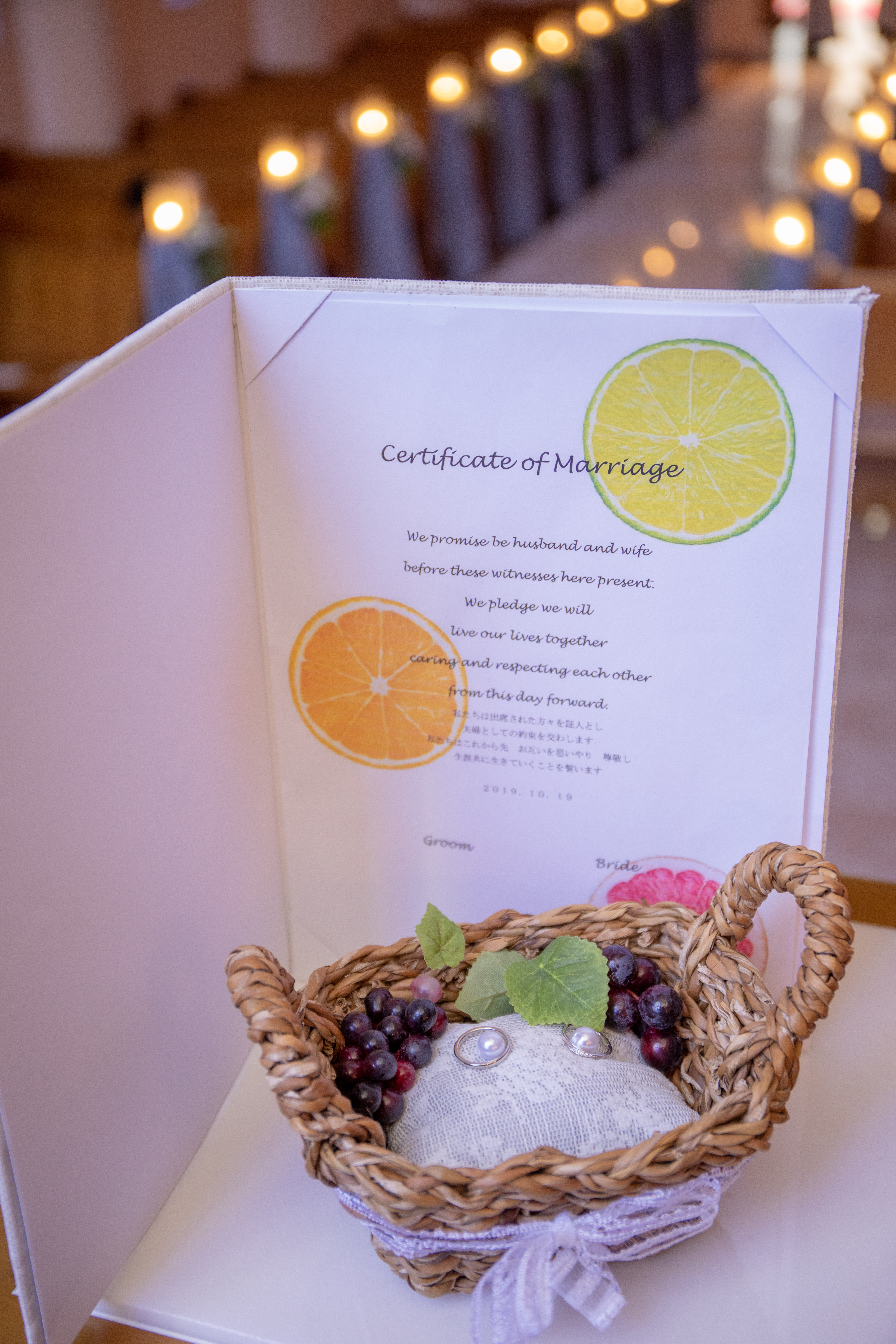 リングピローにはブドウが、誓約書にはオレンジやライムが!☆