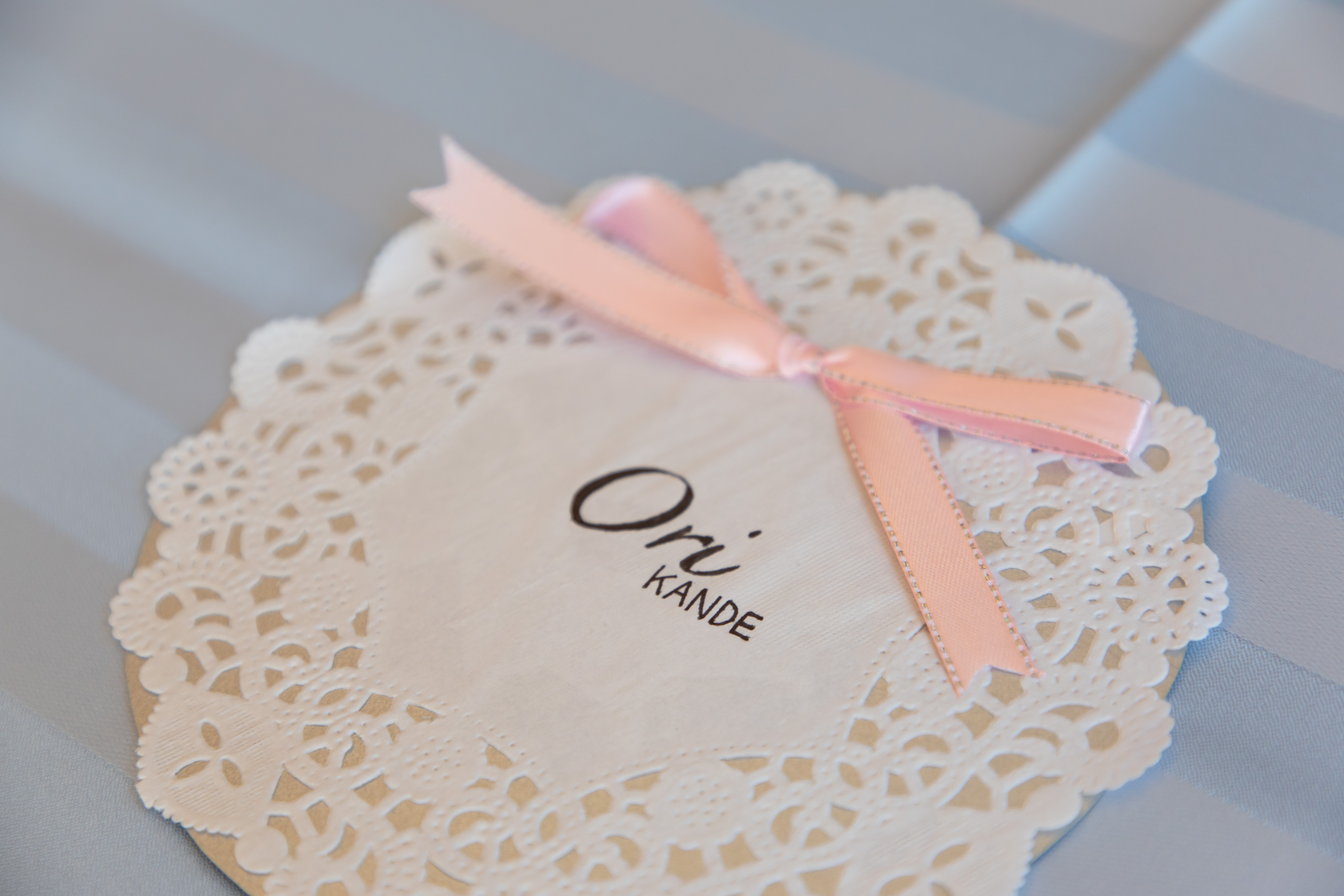 女性のゲストにはピンクのリボンを添えました。