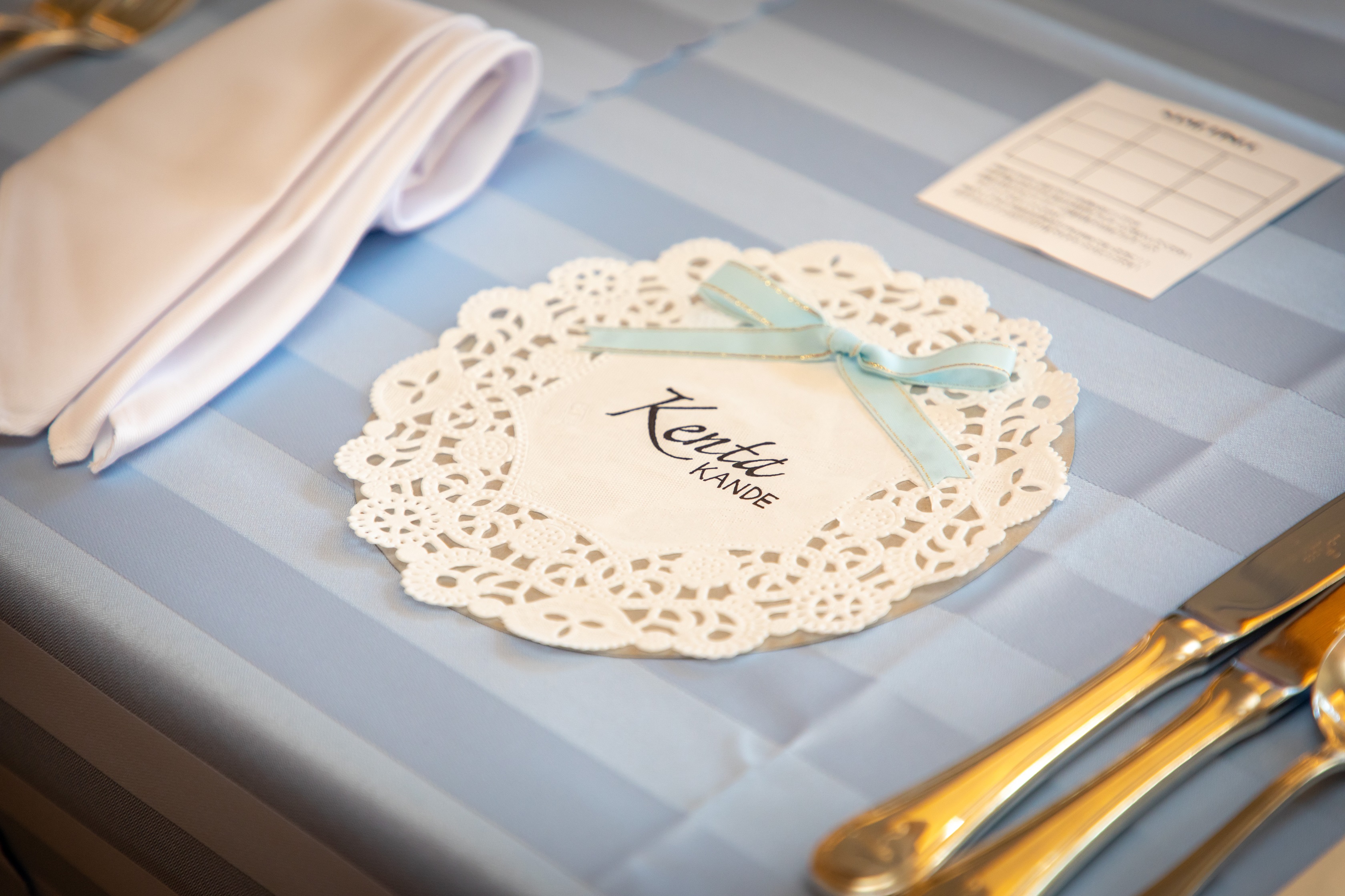 男性のゲストにはブルーのリボンを添えて、